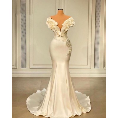 Designer Mermaid Wedding Dresses 2023 Vestidos De Novia V Neck Pearls Beaded Ruffle Elegant