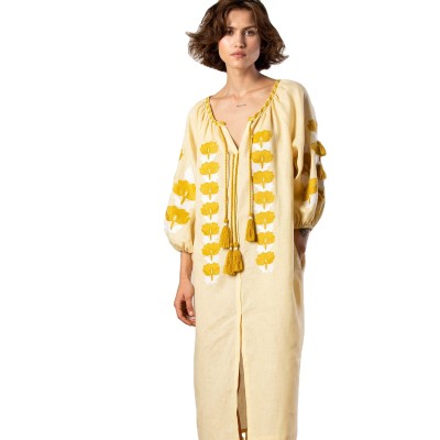 Occasion Wear Floral Embroidered Ukrainian Dresses For Women V-Neck Designer Mid Length Ukrainian Dress