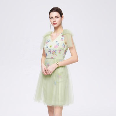 Custom Ladies Silk Floral Embroidery Dress Sleeveless Casual Dress Organza Women's Elegant Mini Evening Gown Dresses