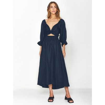 Summer European Style Elegant Ladies Sleeveless Stripe Linen Dress Women's Backless Linen Dress Ladies