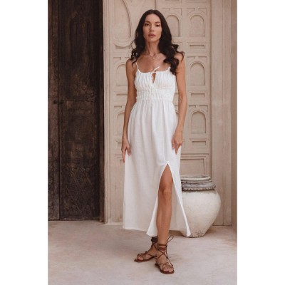 Clothing Manufacturers Custom Lady's Shirred Bodice Summer Casual Dress With Self-tie Women's Sleeveless Midi Elegant Dress
