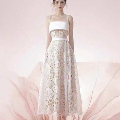 2024 Summer New Sling Dress Women's Summer High end Light Luxury Western Style Lace Embroidered Dress