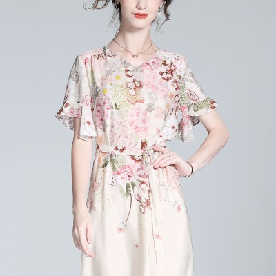 High-end summer dress for women pure silk dress French Floral dress womens elegant