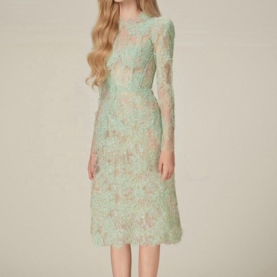 Sexy Perspective Dress 2024 Spring New Beaded Embroidery Slim Fit Dress Lace Mid length Dress