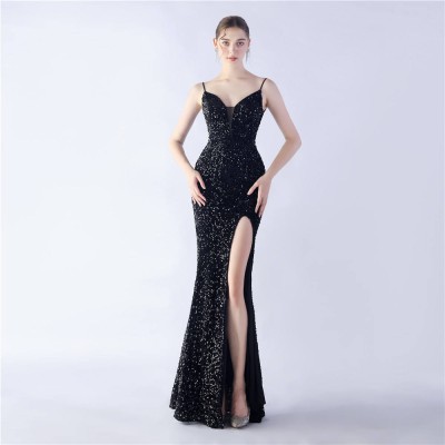 Fashion Sexy Slip High Slit Women's Dress Opening Ceremony Clothing Mermaid Style Sequin Prom Party Dress Evening Dress Women